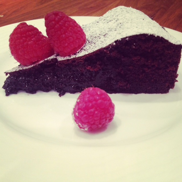 Men over til kaka. Dette er kaka for deg som ikke har tid til å bake, men som setter pris på en ordentlig god og hjemmebakt kake. Den perfekte kake for dessert, syforening, for deg med kjærlighetssorg, et plutselig besøk av svigermor eller om du rett og slett synes du fortjener noe ekstra godt. Kaken er en krysning mellom brownie og sjokoladefondant. Mørk, klissete og farlig god.