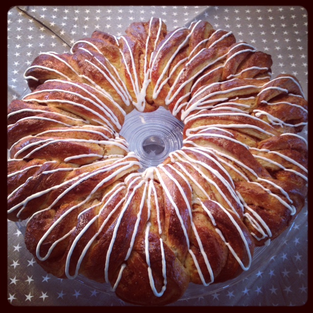 I helga hadde jeg ikke tenkt å bake noen kake, da det har blitt litt mye kake i det siste kan man vel si.. Men i ammetåka som jeg er for tiden, hadde jeg tenkt på muligheten om at det kanskje kunne være fastelavn til helga. Noe jeg senere fant ut at det ikke var og dermed hadde jeg en unnskyldning for å bruke opp en pakke med gjær 😉 Så hva lager man da? Jo, da prøver man seg på noe nytt og så får det bare stå til. Alltid koselig med lukten av nybakt “kaffimad” på en søndag. God søndag!