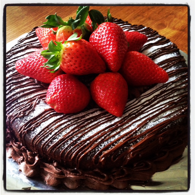Her er den igjen, denne supre sjokoladekaken. Hadde overhodet ikke planlagt noe kakebaking i dag, men etter en punktering av dekk borti barnehagen med dertil skrikende unge og en stressa,svett mor som skulle skifte dekk selv, ble det kake allikevel. Ikke på meg nei, men på han snille mannen som jobbet i barnehagen og som tilbød sin hjelp når han så situasjonen. Håper de får en flott lunchpause i barnehagen i morgen!