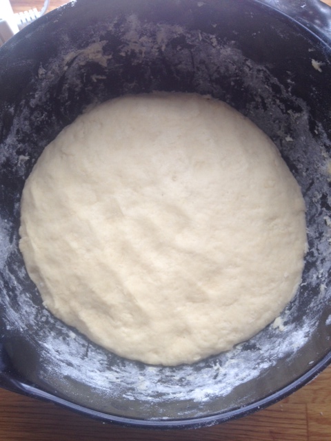 Ha alt det tørre i en bakebolle og bland. Del smøret opp i fine, små terninger og kna dette inn i deigen slik at det blander seg godt. Jeg synes det funker best om man bruker knokene på hånda ned i bollen og kviser smøret inn i melblandingen. Når dette er gjort, tar du og tilsetter melk, egg og smakstilsetninger. Rør sammen i starten og trenger deigen litt mer mel, tilsetter du det. Men som alltid, ikke ha i mer mel enn du trenger. Deigen skal akkurat bare slippe bollen og ikke klistre seg fast i fingrene.