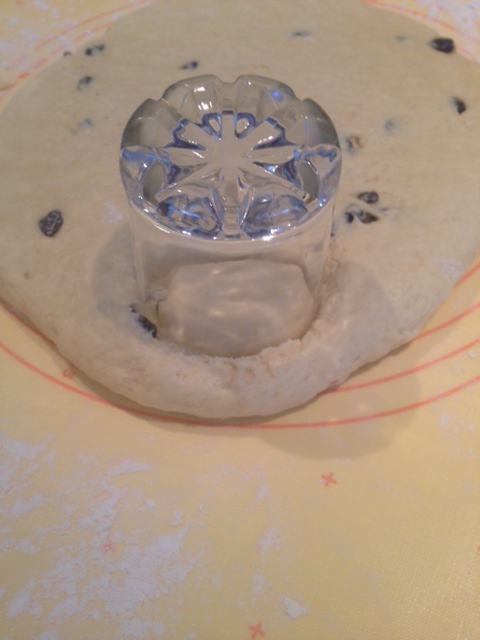 Finn fram et bakeunderlag, mel dette og press ut deigen til en leiv på ca. 2 cm høyde. Så tar man f.eks. et lite glass, meler dette lett rundt kanten, og stikker ut sconesen. Press ned først på ene siden før du trykker ned hele glasset. På den måten slipper du å skvise flat hele sconesen og den hever seg flottere under steking.