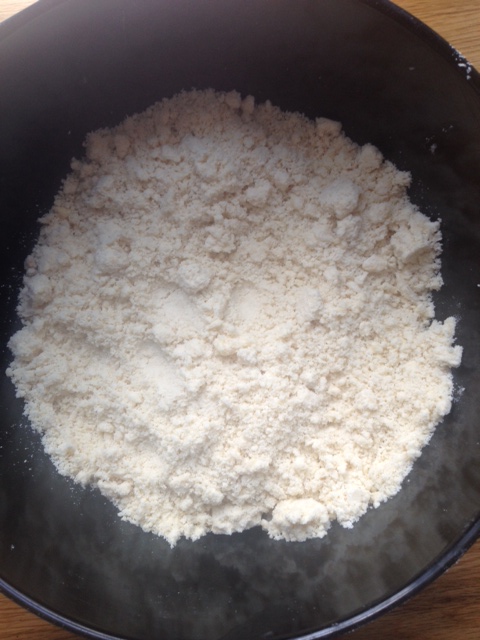 Mal opp mandler i kvern for hånd. Ikke fall for fristelsen med blender/hurtigmikser. Det kan føre til flate ringer. Sikt i melis og mel og bland sammen. Mål opp 1 dl eggehviter og tilsett dette. Kna godt sammen for hånd. Deigen skal være jevn og hard. Du må virkelig jobbe for å få den sammen. Er den for myk, tilsett litt mer melis. Pakk deigen inn i plast og legg i kjøleskap i noen timer, evt. dager om du ønsker det. Deigen holder seg fint om den får ligge kaldt.