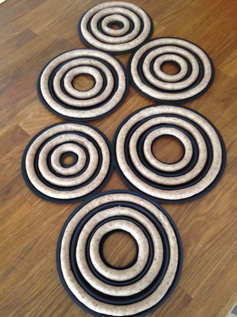 Trill ut pølser med tykkelse som en finger, ca. 1-1,5 cm tykk. Tilpass disse lengdemessig etter formene. Ja, jeg vil absolutt anbefale kransekakeformer. Men er du av det tøffe og vågale slaget, så bak gjerne på frihånd 😉