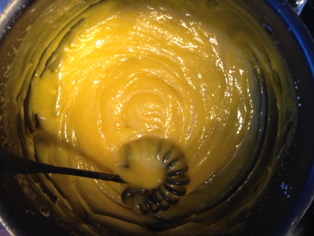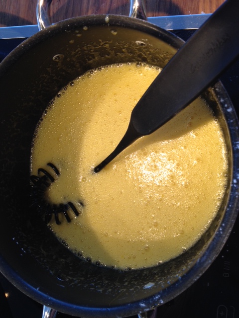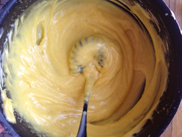 Ha eggeplommer, melis, fløte og vanilje i en tykkbunnet kjele og kok opp under stadig omrøring. Når kremen begynner å tykne (rett før det koker) rører du som en gal. Hold på til kremen har tyknet og pass på slik at du ikke ender opp med eggerøre.. Sett kremen til avkjøling og rør av og til for å forhindre snert. Ha gjerne over plastfolie også. Når kremen har blitt avkjølt til romtemperatur røres romtemperert smør inn i kremen. Dette fungerer best om du da også på forhånd har delt smøret opp i terninger.