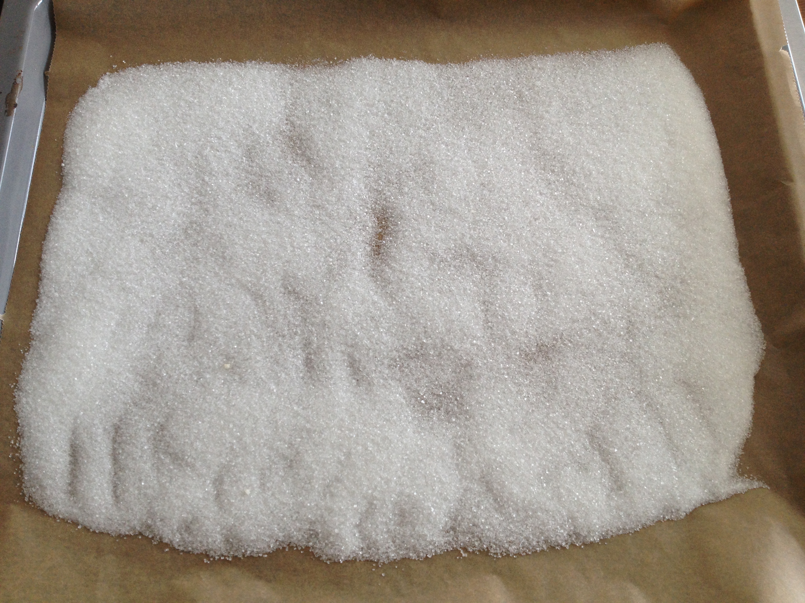 Sett ovnen på 160 grader. Finn fram 6 romtempererte egg og pisk de i en kjøkkenmaskin på middels hastighet.  Ha sukkeret på en bakepapirkledd stekeplate og varm det opp i ovnen i noen minutter. Følg med for det skal ikke smelte. Når du ser antydning til at det begynner å smelte i de ytterste sukkerkornene, tar du brettet ut av ovnen, og har sukkeret over i kjøkkenmaskinen sammen med eggene.