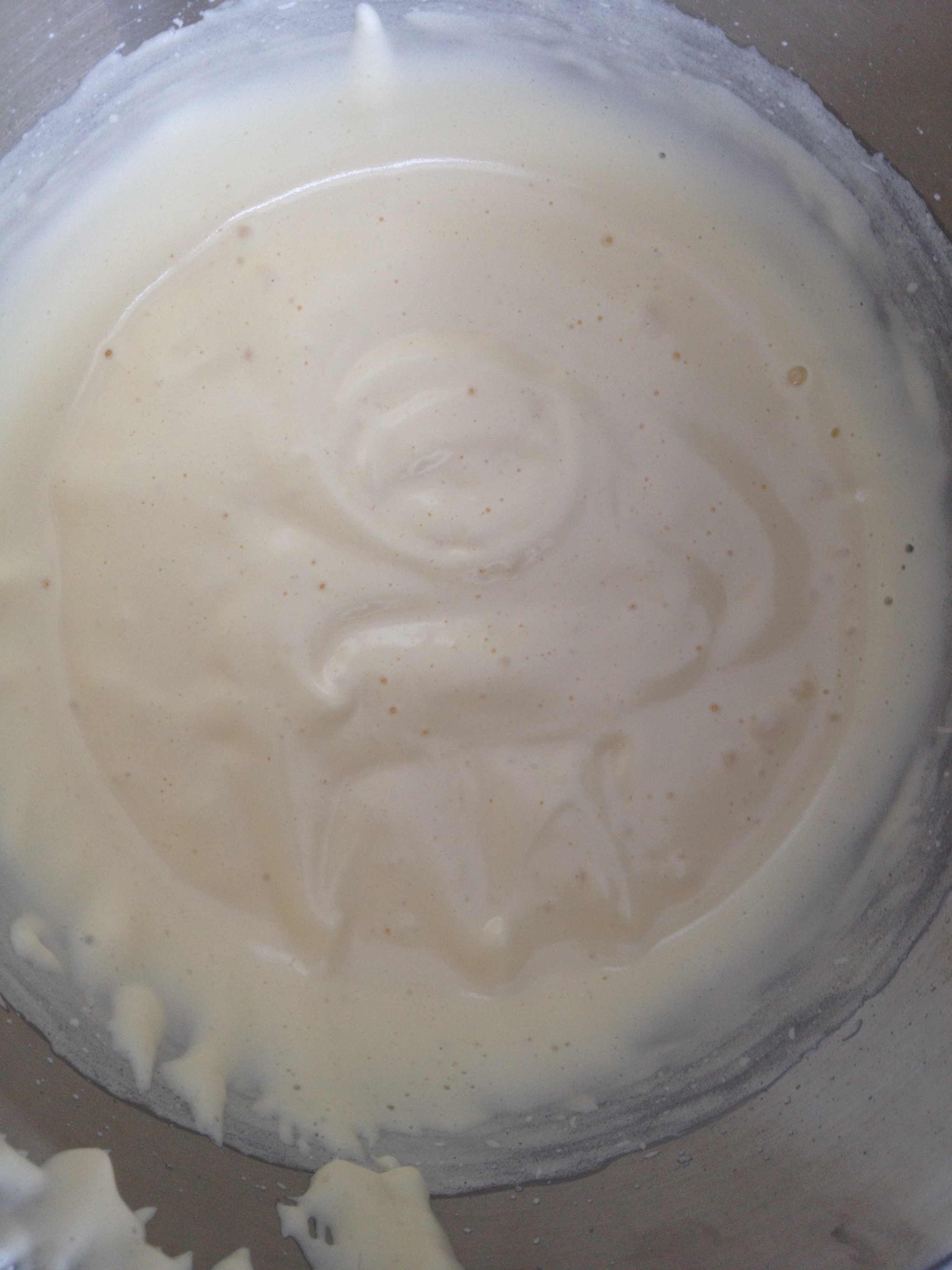 Pisk videre til du har fått en stiv og fin eggedosis. Dette tar noen minutter så her kan du sette på en Bon Jovi-låt og synge med mens du venter. Den store testen for å finne ut om eggedosisen er stiv nok, er å kunne skrive OLE i eggedosisen og at O-en holder seg fortsatt når du er ferdig med å skrive E-en.William og Markus fram til 20.05.2014 826