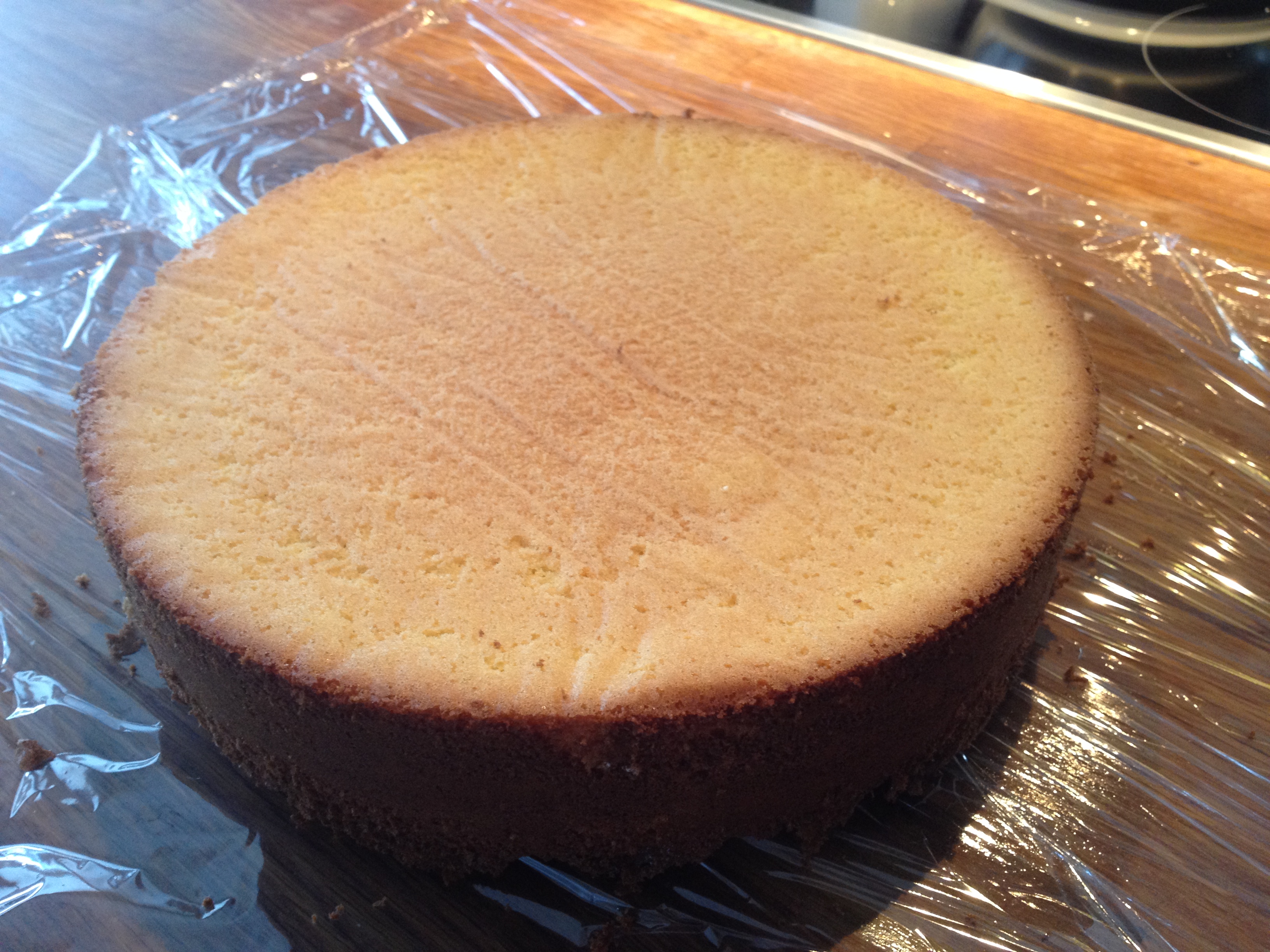 1. Del kakebunnen i 3 eller 4 deler. Alt etter hvor høy den blir.  Legg den nederste bunnen på et fat.