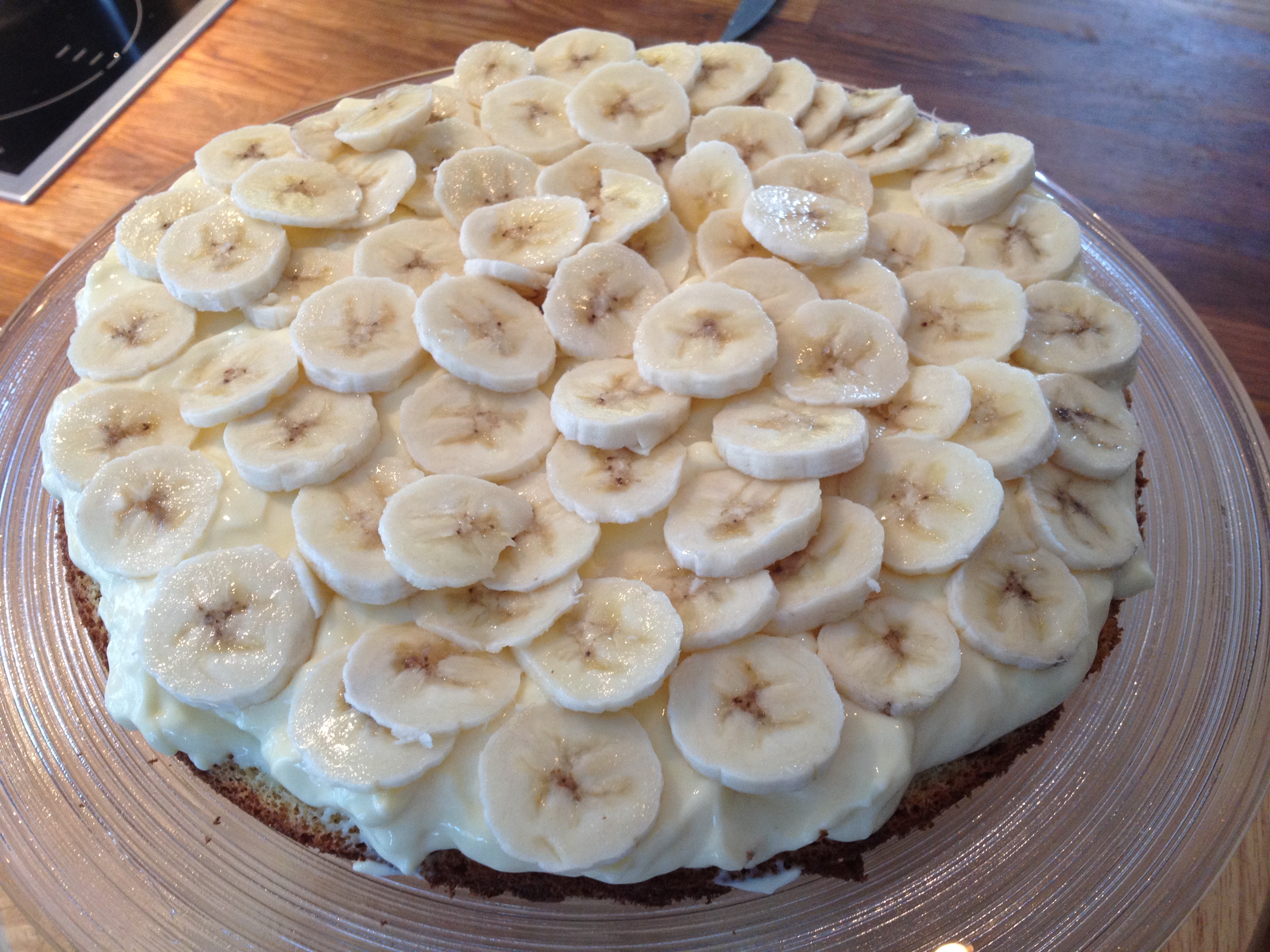 5. Legg på et godt lag med vaniljekrem og banan oppå der igjen.