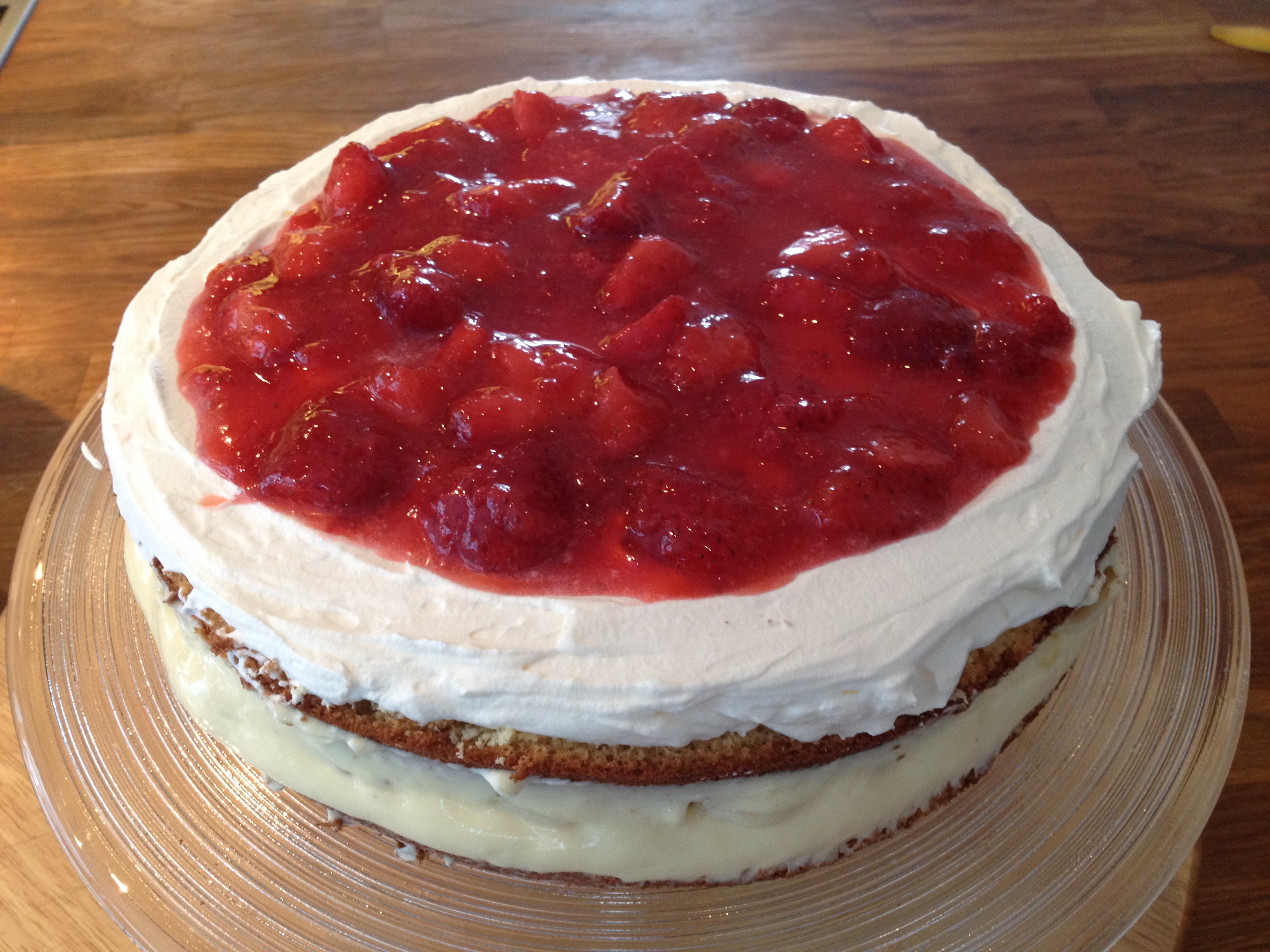 3. Ha på et lag med krem og rørte jordbær.