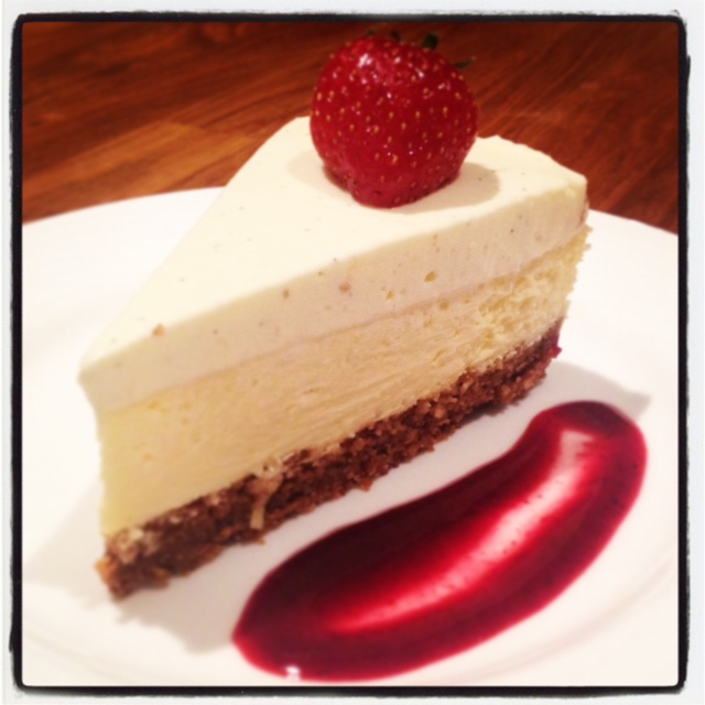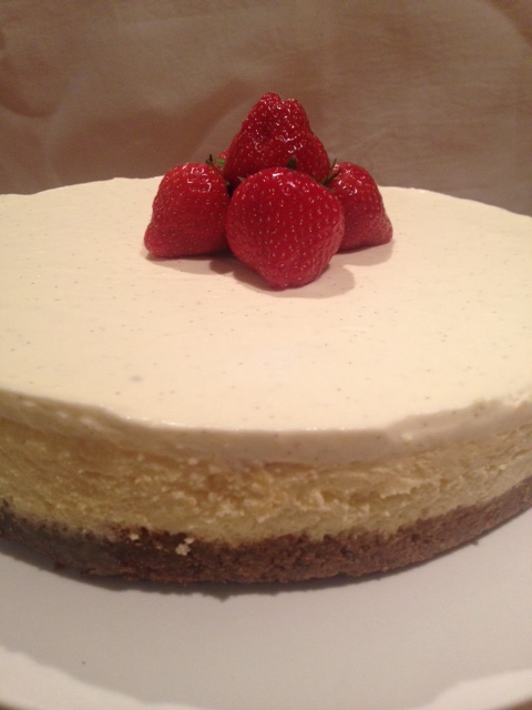 Jepp, intet mindre, vil jeg påstå. I alle fall av den ovnsbakte sorten. Nå har jeg smattet og bakt meg fram til min egen ostekakeoppskrift og denne ble jammen meg god, om jeg kan få si det selv 🙂 For å sitere min far som fikk denne servert på farsdagen: Det hær må da vær nåkka tå det likast du har bakt! Og ettersom han har fått være prøvekanin for utallige kaker opp gjennom tidene, så får vi si at dommen kommer fra en godt kvalifisert kilde. Kaken består av en sprø bunn, et fløyelsmykt og kremete fyll samt toppet med et lag med rømmekrem tilsatt ekte vanilje. NAM!!! Jeg har servert kaken denne gangen med en skogsbærcoulis, men man kan fritt bruke andre typer frisk bærsaus til kaken etter ønske.