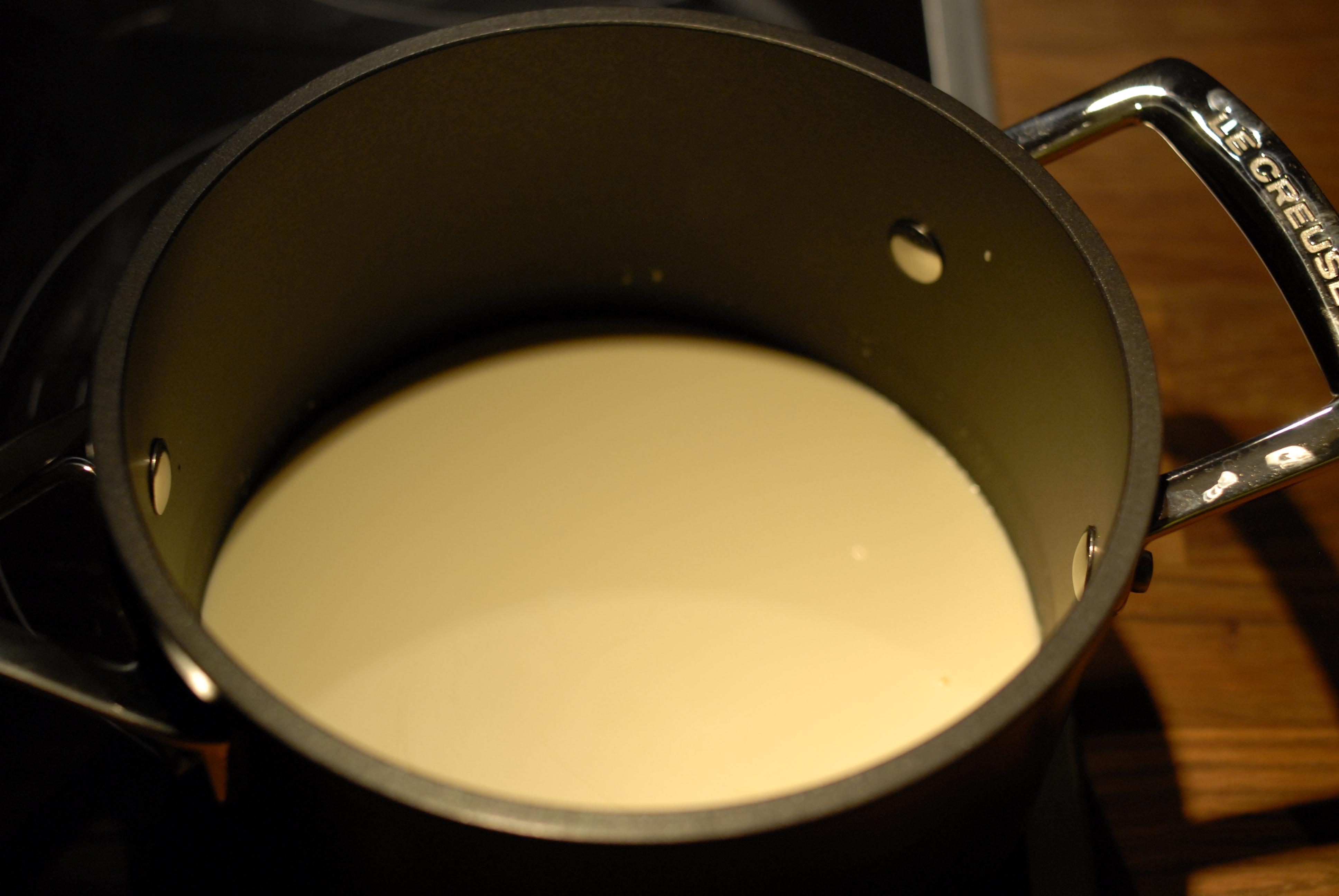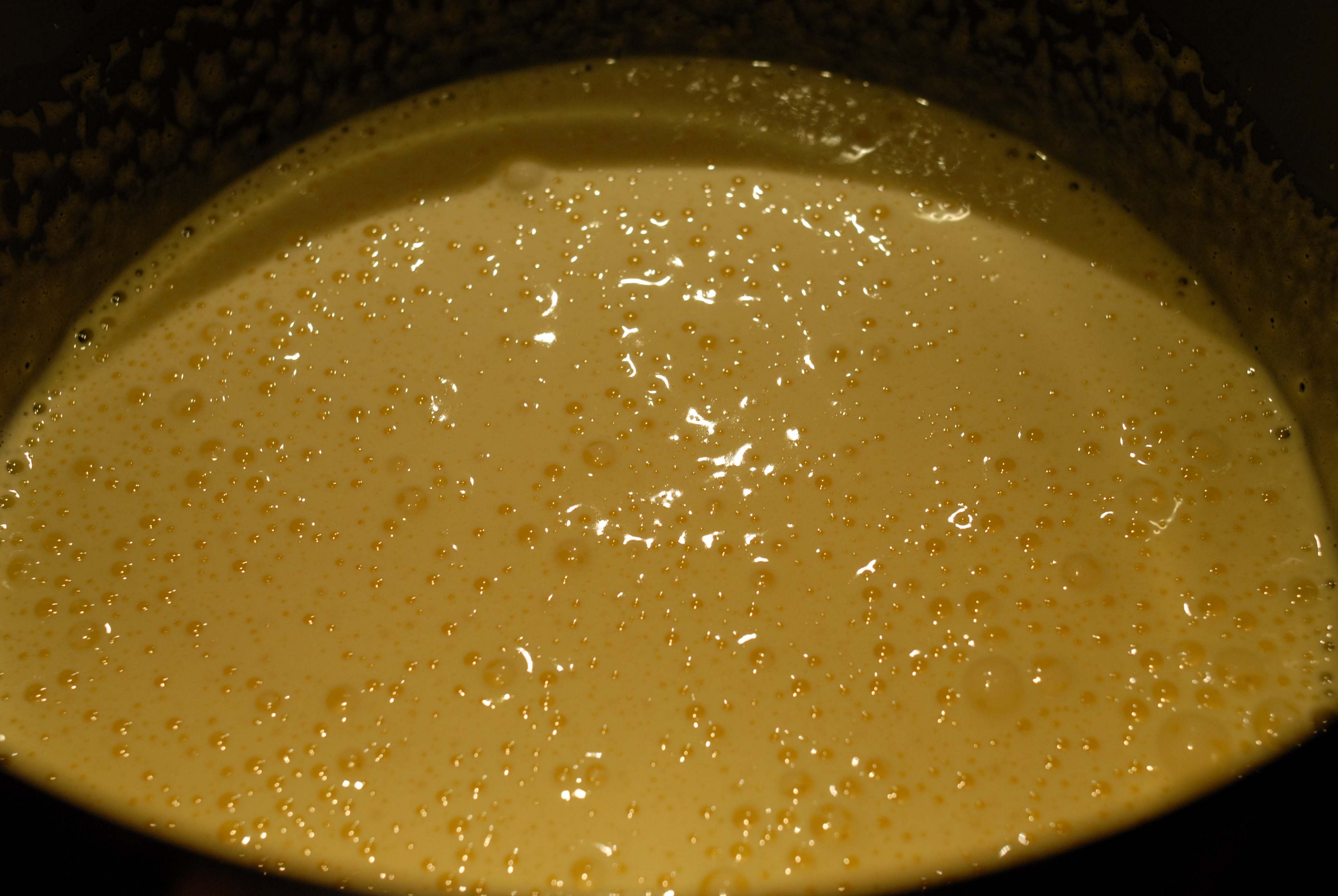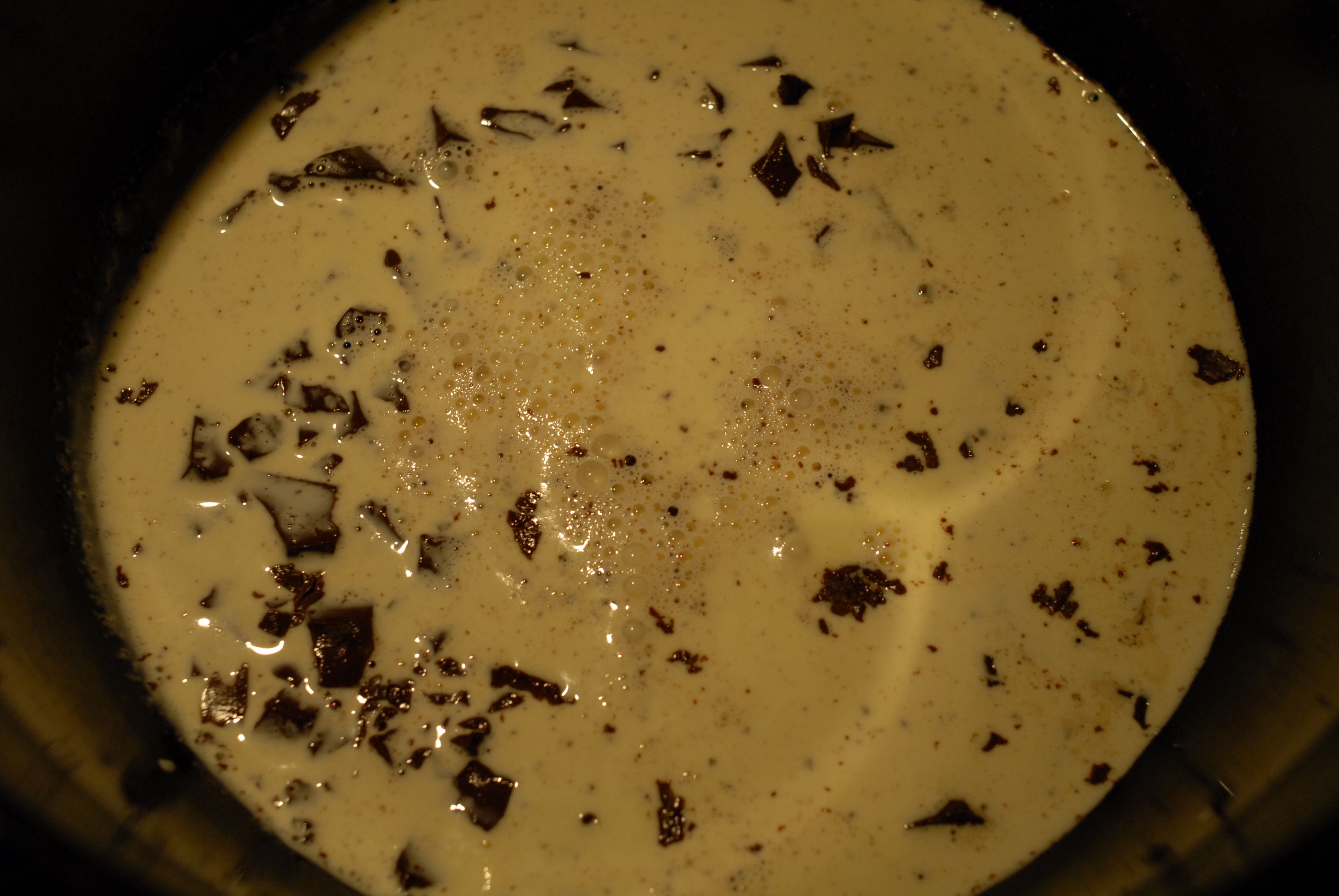 Nå er det glasurtid. Finhakk sjokoladen og ha denne over i en bolle. Gi fløten et raskt oppkok under omrøring og hell denne over sjokoladen. La stå i et min eller to før du begynner å røre. Ikke rør for fort, for vi vil helst unngå for mye luftbobler i glasuren.