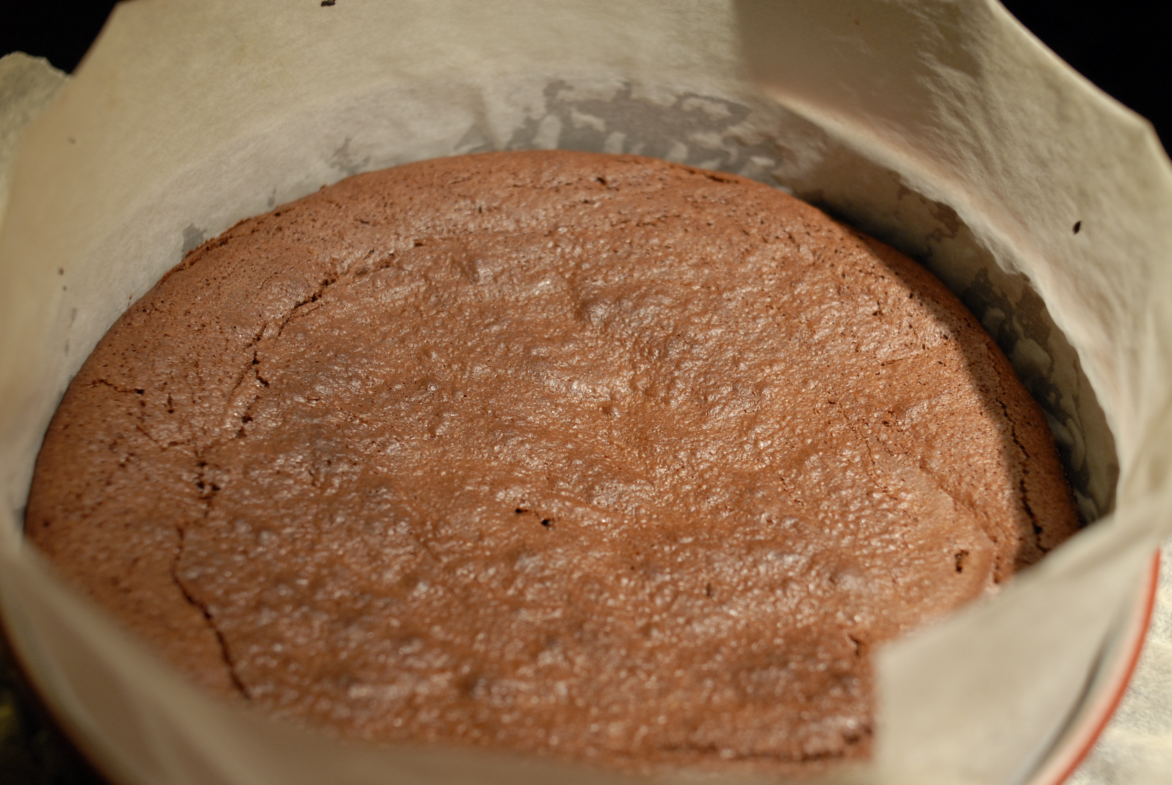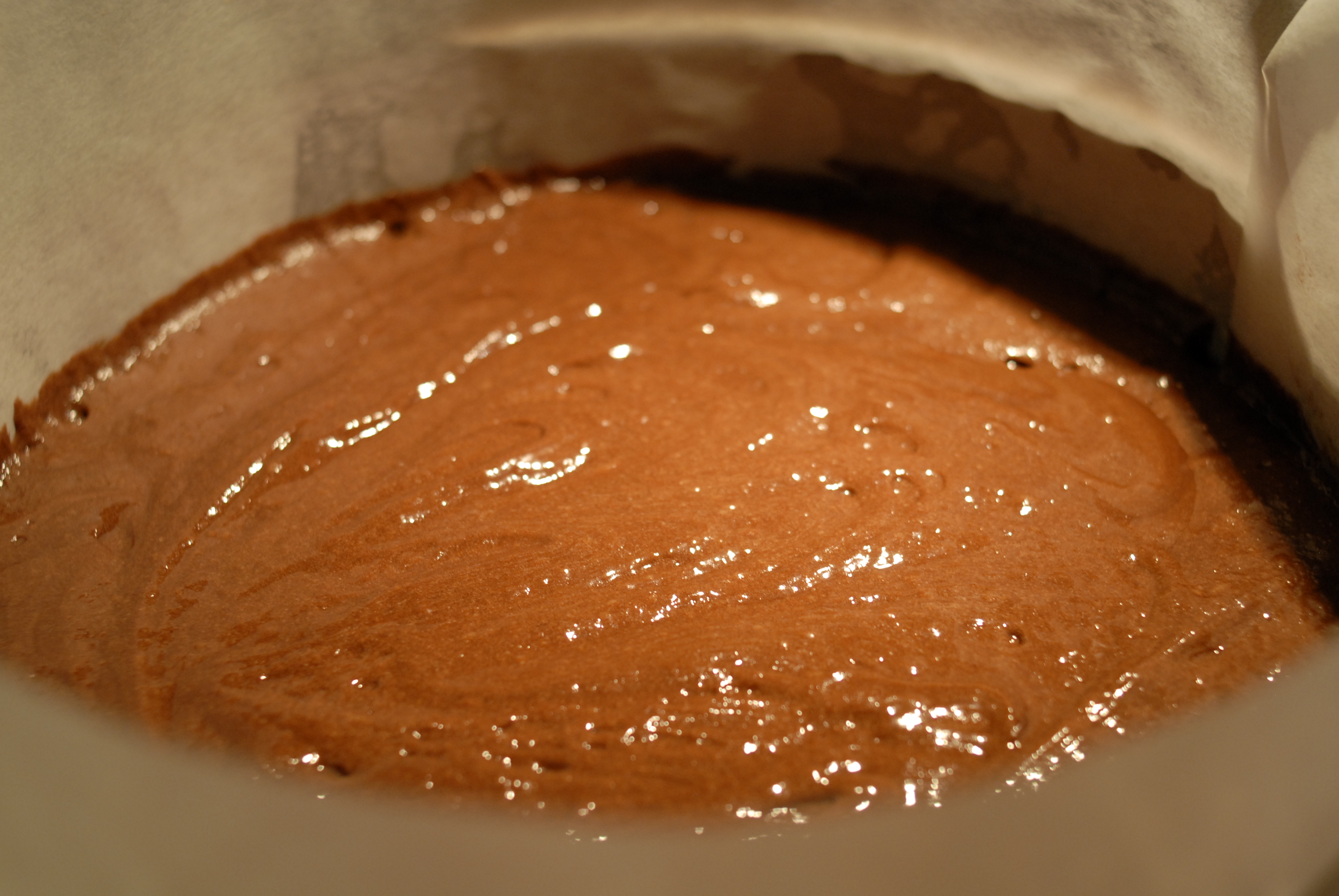 Pisk eggedosis av egg og sukker. Sikt inn hvetemel og vend forsiktig inn med en slikkepott. Tilsett så sjokolademassen og bland forsiktig til alt er godt blandet.