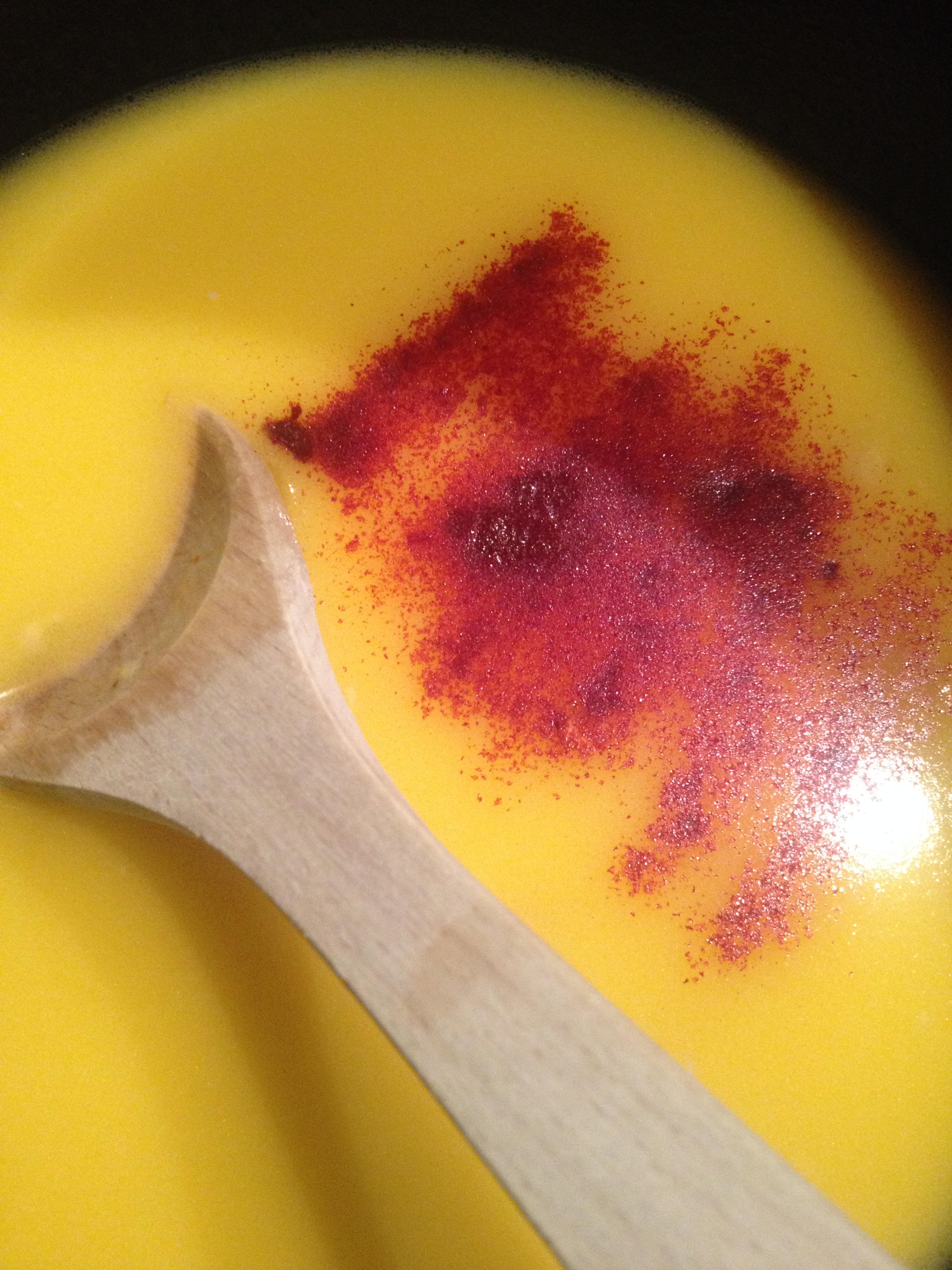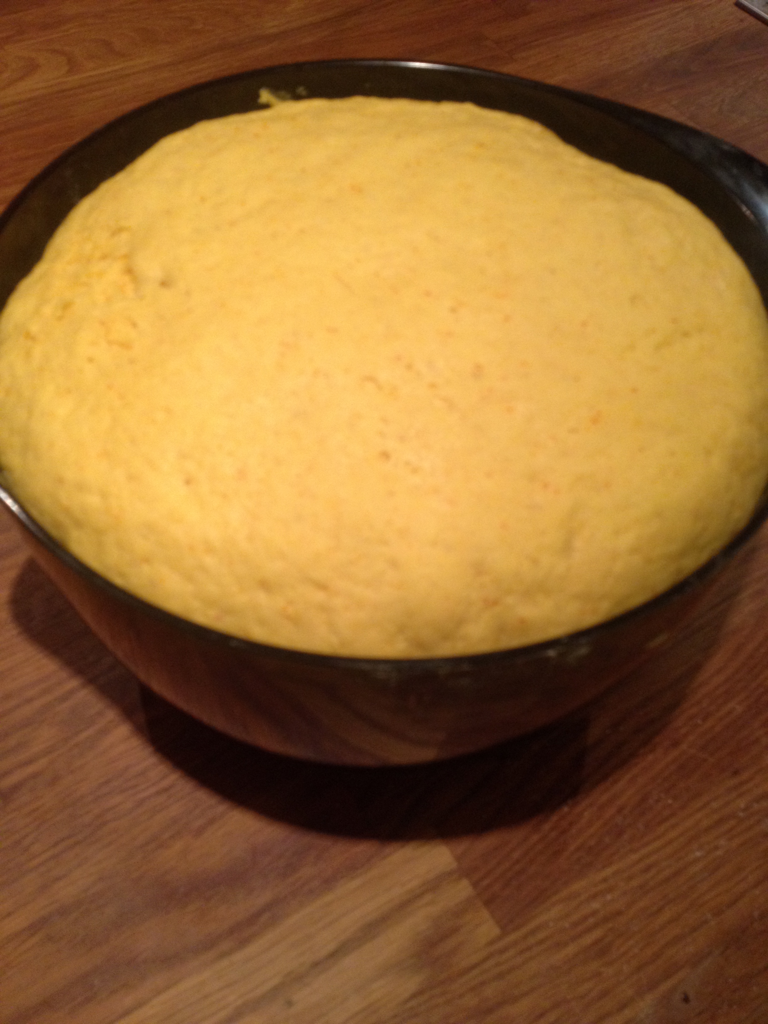 Smuldre gjær i en bolle. Smelt smøret i en kasserolle og tilsett melken. Varm opp til 37 grader. Ha så melk- og smørblandingen over gjæren og rør til all gjæra er oppløst. Tilsett så sukker, egg og safran. Rør sammen til sukkeret er oppløst. Til slutt har du i melet og rører til deigen akkurat slipper bollen. Juster litt på slutten med melet slik at det ikke blir for lite eller for mye mel. Deigen skal være blank, deilig og myk når den er ferdig. Dekk til med plast og sett på et lunt sted i ca. 45 min. Deigen skal heve til dobbel størrelse.