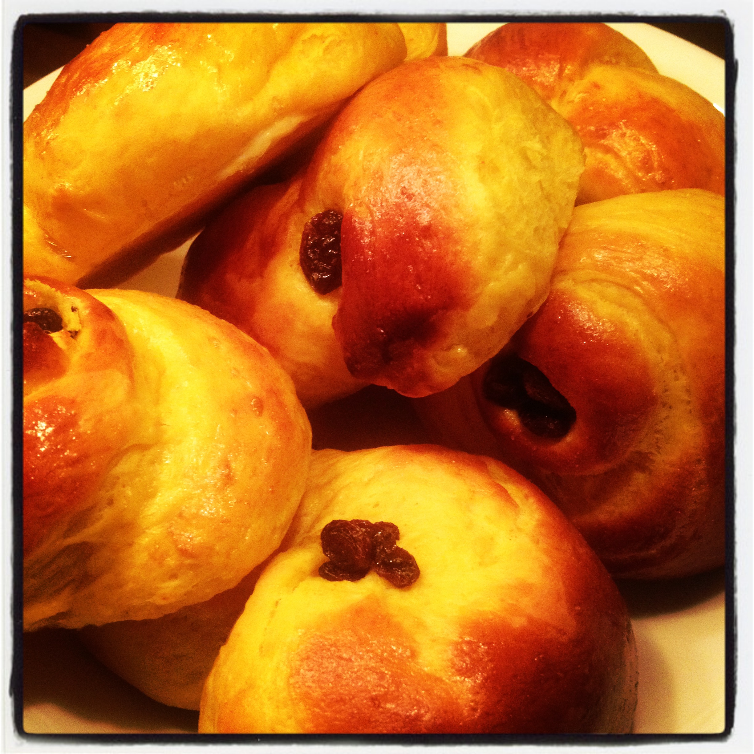 Da var den her igjen, luciadagen. Med flashback tilbake til barndommens skolekjøkken, mors hvite laken som etter en runde med saksa ble til de fineste luciakjoler og duften av nystekte lussekatter. Var nesten som en liten minijulaften å regne for så spent var jeg på denne dagen. Fikk dessverre aldri sjansen til å være selveste Lucia, men gjorde meg allikevel godt som Lucias gode medhjelper med en kurv lussekatter og med glitter i håret. Nå gjelder det å overføre tradisjonene videre og skape magi for de minste i huset. Så vær så god, her kommer en knakende god og selvkomponert oppskrift på lussekatter. De er fantastisk luftige, saftige og himla gode med smak av ekte safran. God fornøyelse og god adventstid enn så lenge. I`ll be back!