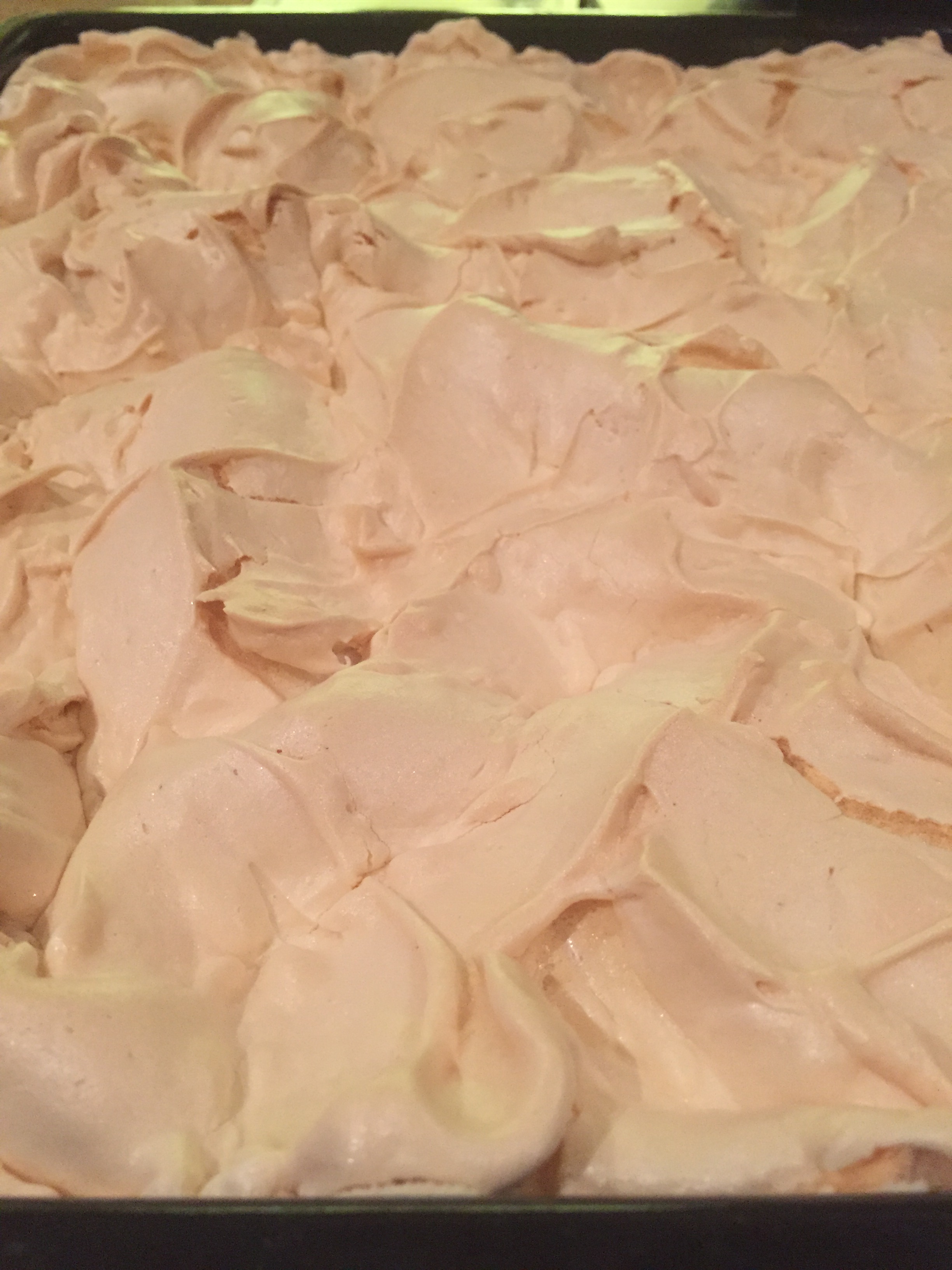 Rør romtemperert smør og sukker hvitt med miksmaster. Skill eggehviter (ta vare på disse)og plommer og tilsett plommene en og en mens du pisker godt mellom hver plomme. Når eggeplommene er godt blandet inn, blander du sammen det tørre, sikter det inn i røren, blander sammen og tilsetter 5 ss helmelk. Legg bakepapir i en stor langpanne og smør deigen jevnt utover.