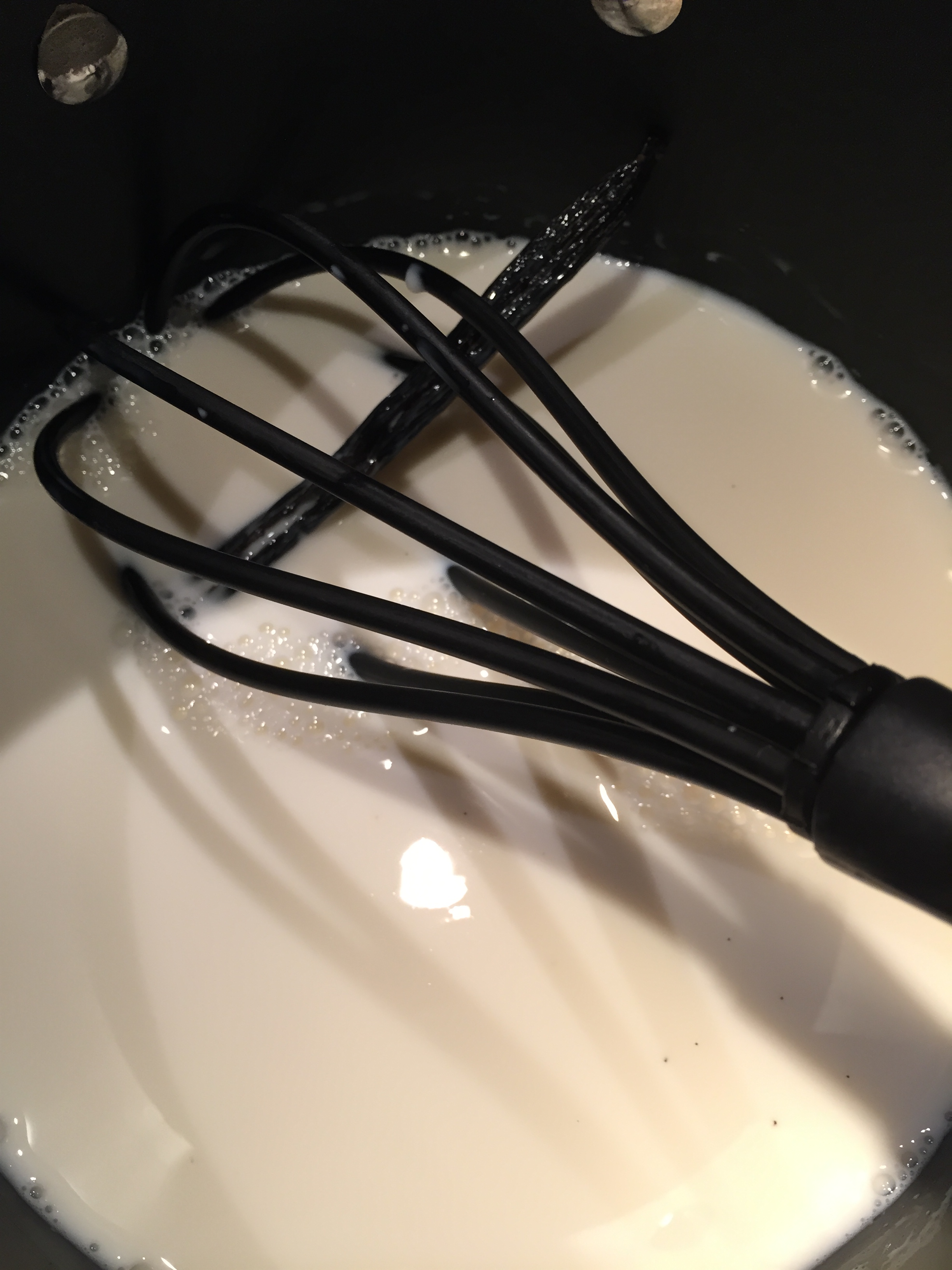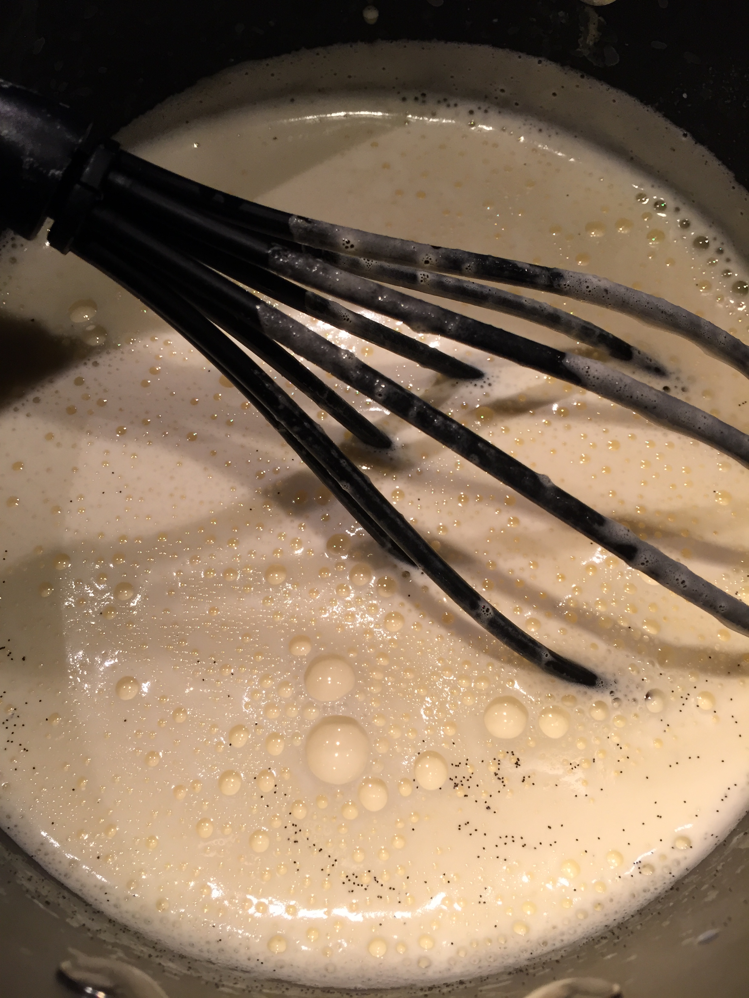 Vaniljekremen lages ved at du deler en vaniljestang og skraper ut frøene med en kniv. Ha dette i en tykkbunnet kasserolle sammen med melk. Gi dette et oppkok og sett til side. Ta ut vaniljestangen. Pisk så eggeplommene godt sammen med sukkeret og maisenna i en egen bolle som tåler varme.