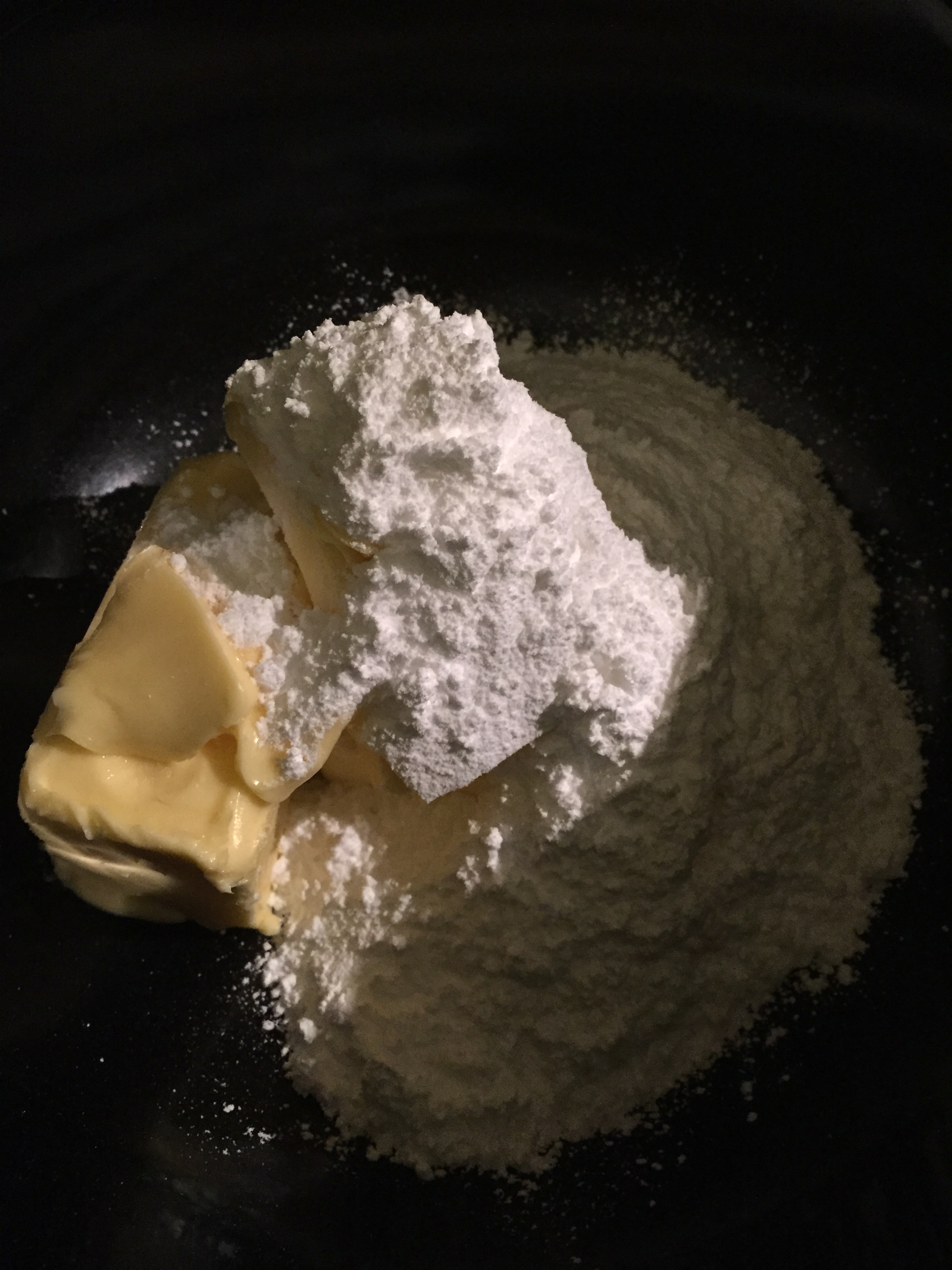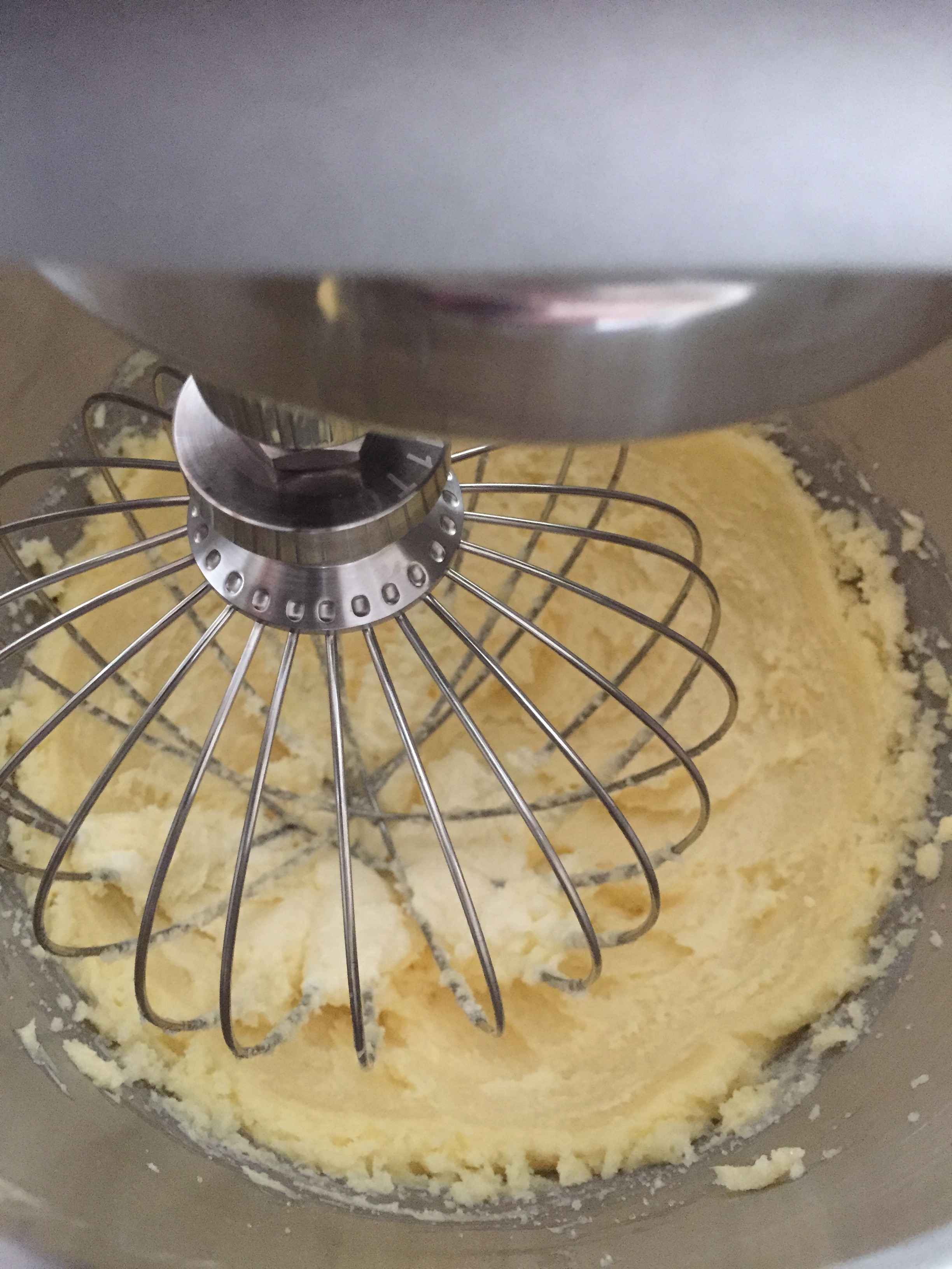 Finn fram kjøkkenmaskina eller miksmasteren og pisk sammen romtemperert smør og sukker. Piskes godt til du har fått en hvit, luftig masse.