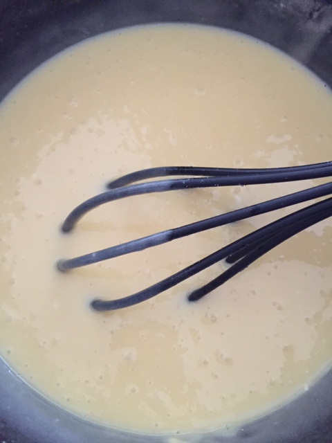 Når du da har laget røren ferdig, skreller du eplene, fjerner kjærnehuset og deler eplene i båter. Ca 1 cm tykk på det breieste.