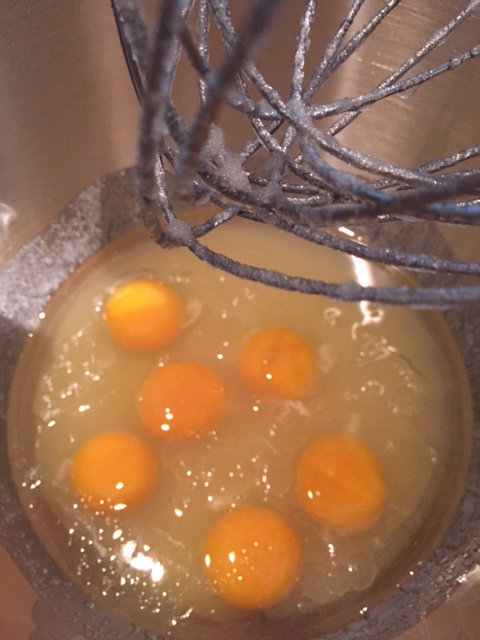 Rasp gulrot og eple, bland og sett dette til side. Bland så sukker og olje i egen bolle og visp sammen med en miksmaster/kjøkkenmaskin. Pisk inn eggene til du har fått en tykk og lys masse.