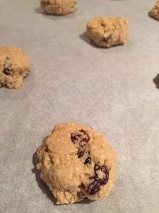 Jevn de til litt med fingrene og sett steikebrettet i ovnen. De vil flyte utover i ovnen, så ikke sett deigklumpene for tett. Kjeksene er ferdige etter ca. 9-11 minutter. Pass på mot slutten da de får fort for mye farge. Cookisene er ferdige når de har blitt gylne og pene, ikke for lyse og heller ikke for brune. Avkjøles på rist.